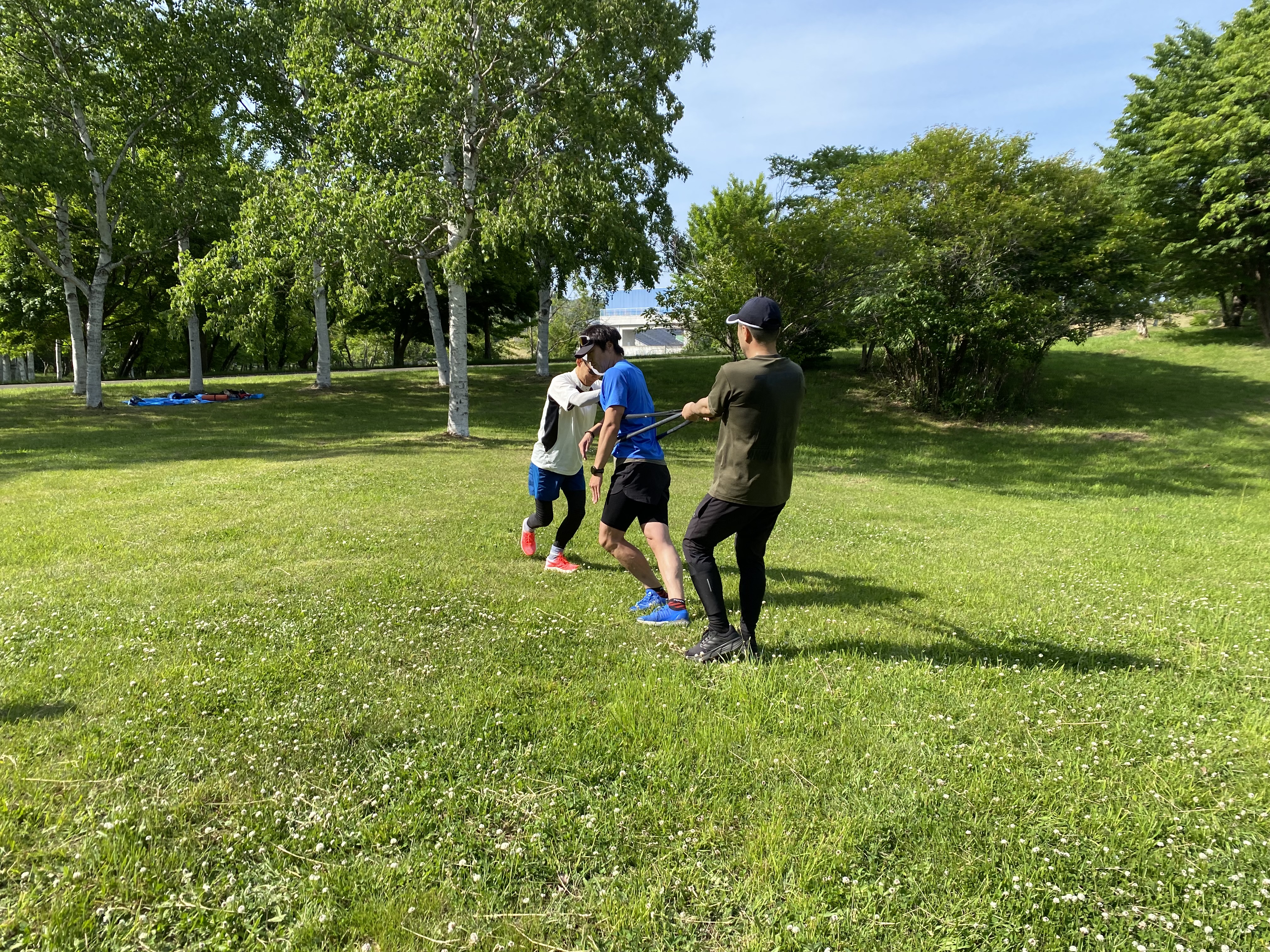 クロスカントリースキーに必要な基本動作をトレーニングしながら学びます。雪上では気にせずに滑走できるように確認することで競技力を助けます。無理せず各自やれる範囲で学び、挑戦できるのでレベル関係なく練習やストレッチの機会としてもご利用ください。
